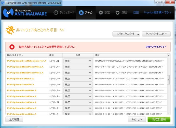 無料ウイルス駆除ツール Malwarebytes Anti-Malware Free